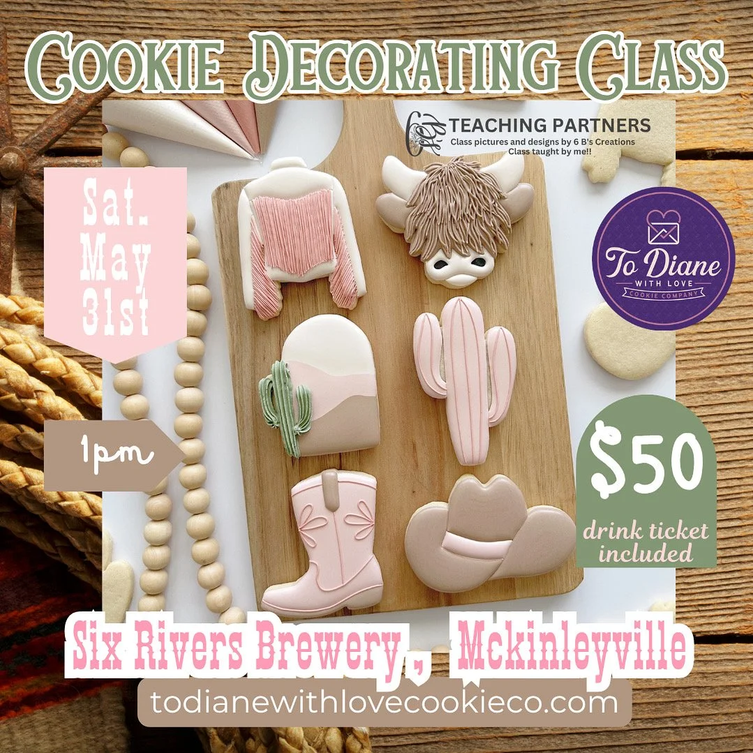Class tickets include all materials needed to decorate 6 curated cookies, a drink ticket to use at Six Rivers Brewery’s bar, a few special class treats, and a 2 hour course taught by Kimberly from To Diane With Love Cookie Co! Bring your friends, order some yummy food, and leave with some tasty treats! Tickets will go on sale at todianewithlovecookieco.com .