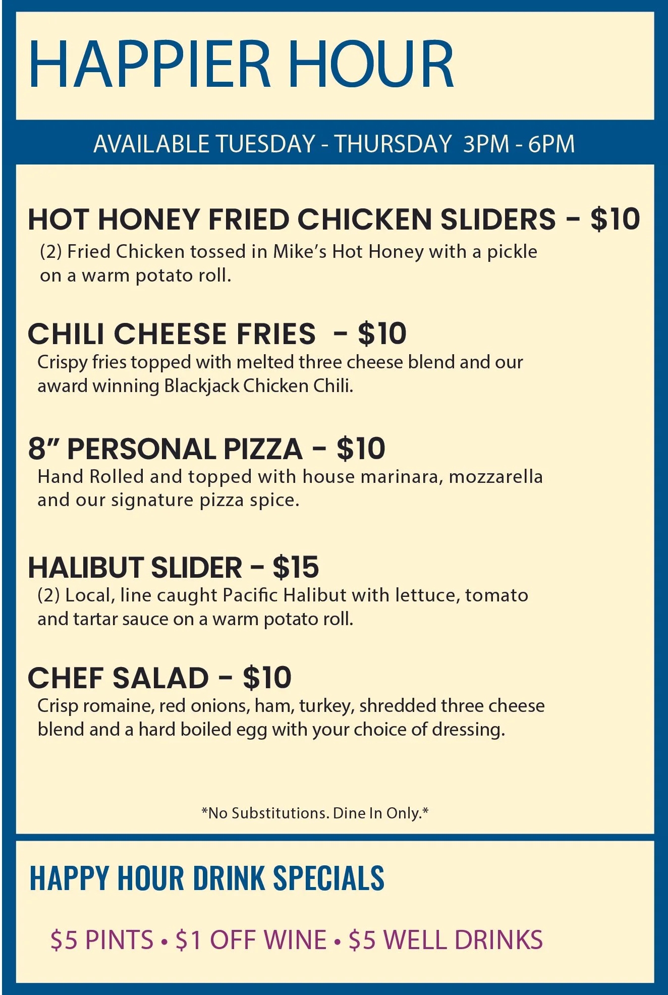 Happy Hour 3-6 PM Thursday, February 19, 2026 3:00 PM 6:00 PM 15:00 18:00 Six Rivers Brewery 1300 Central Avenue McKinleyville, CA, 95519 (map) Google Calendar ICS